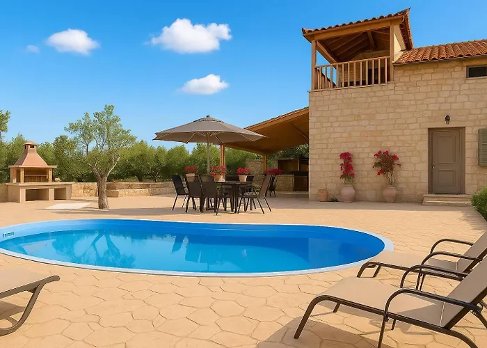 Die 3-Zimmer- Selinitsa Stone Residence-Private Poolside Retreat verfügt über eine sonnige Terrasse mit Aussicht aufs Meer sowie einen Swimmingpool.